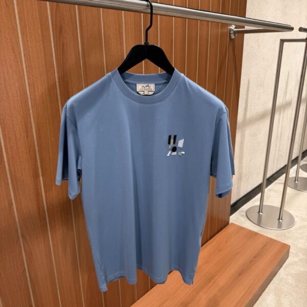 hermes H embroidered T-Shirt Licht Blauw