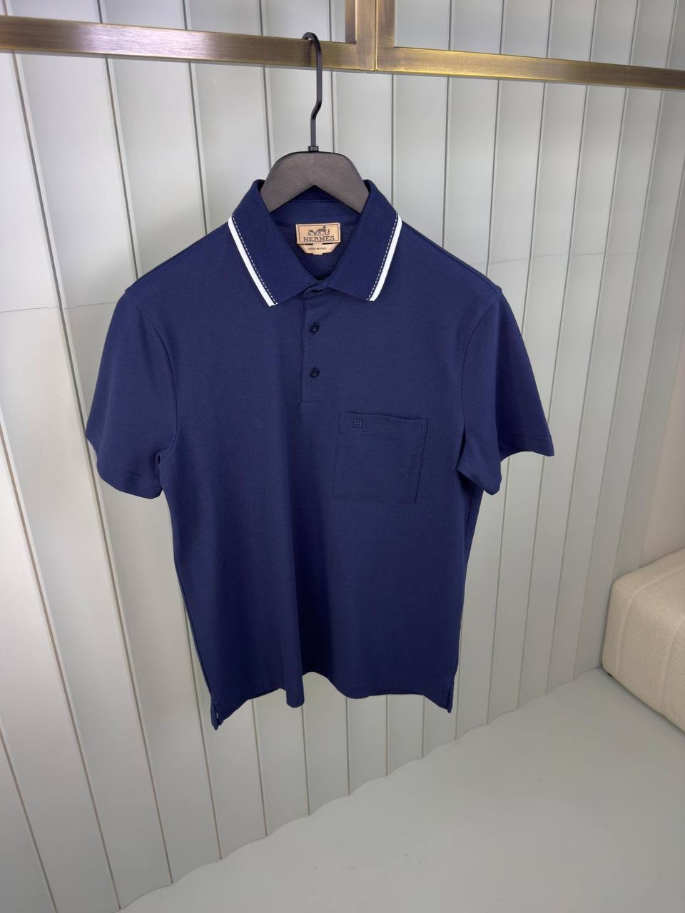 Hermes H Embroidered Polo Navy Blue